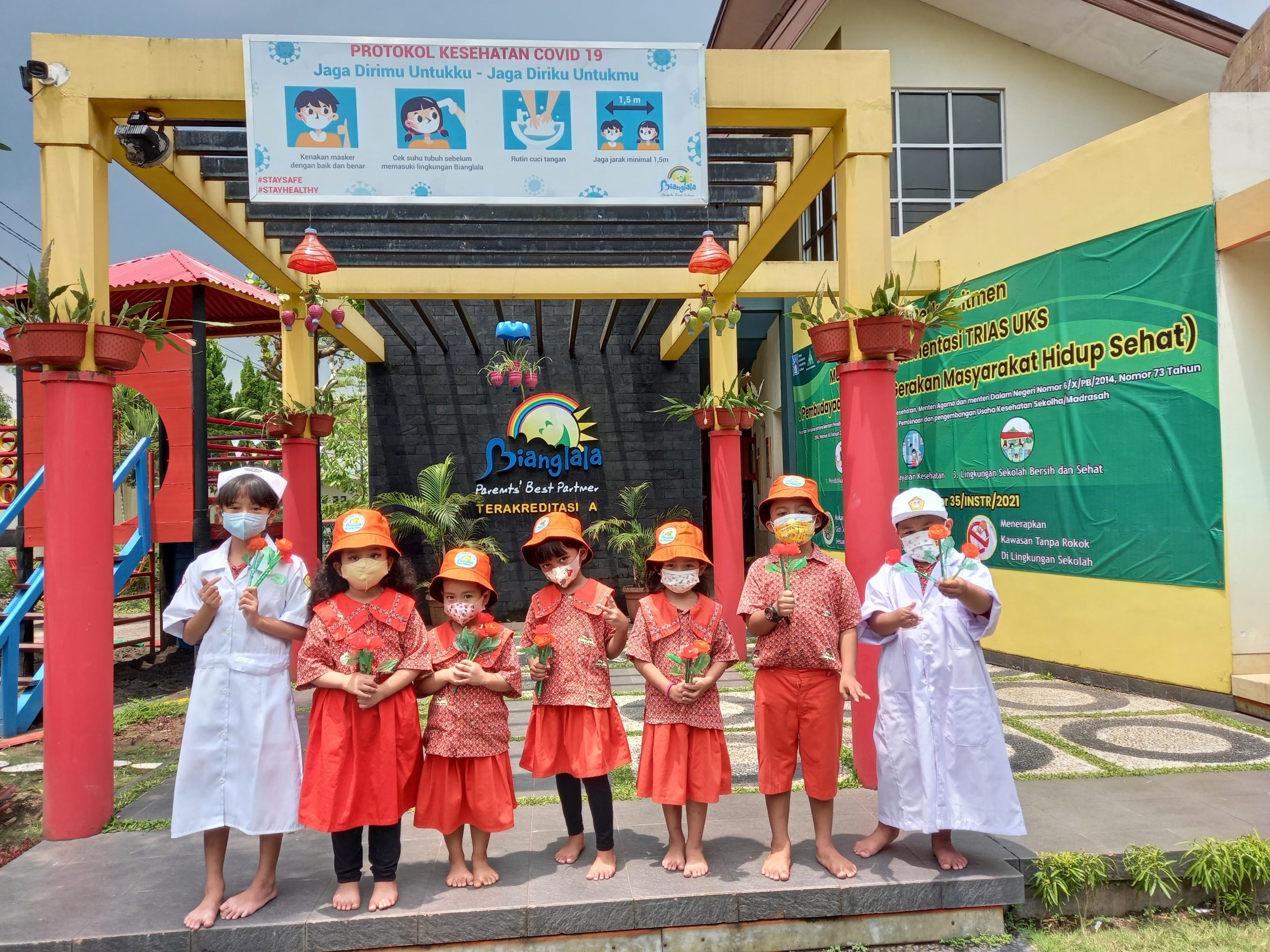 Kini hari ini kami yang disebut pahlawan tanpa tanda jasa. Hanya mampu meminta maaf & berterimakasih yang sebesar-besarnya. Kami orang tua kedua dari anak-anak Bianglala. Menyerahkan kembali harta yang paling berharga putra-putri TK B tercinta kami. Yang telah berhasil belajar bersama,berproses & bertumbuh kembang bersama.di Bianglala”